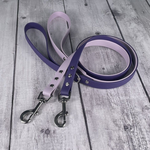 Introducing our handmade Lilac Waterproof BioThane® Lead. A high quality, extremely durable lead that is perfect for dogs who love to adventure, whether that's rolling in mud, splashing in puddles, swimming or simply exploring the outdoors - this lead keeps up with every adventure! BioThane® is a great low maintenance alternative to leather although it looks and feels very similar.